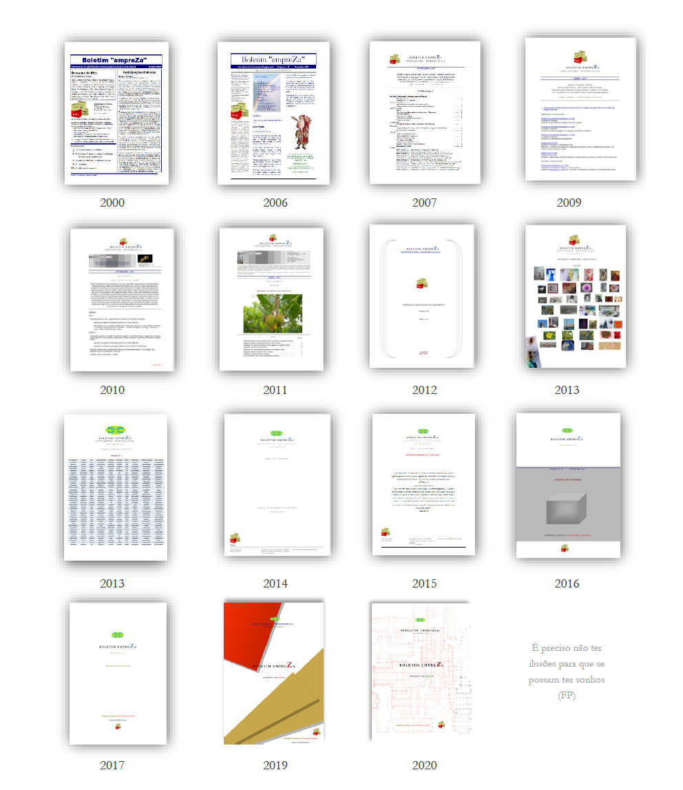 Durante 20 anos o “boletim empreZa” apenas esteve disponível a parceiros e clientes ativos da consultora. As fotos em anexo mostram quinze capas do BEz que ilustram a evolução histórica (2000/2020).
